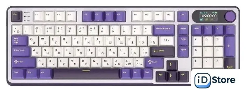 игровая для ПК, механическая, RK Brown, ход тактильный/с кликом, пластик, интерфейс подключения - USB-A/радио/Bluetooth/USB-C, подсветка, кириллица: да, USB-хаб, цвет белый/темно-синий/фиолетовый. Доставим по Минску в день заказа, при оформлении заявки до 14.00. Официальная гарантия.