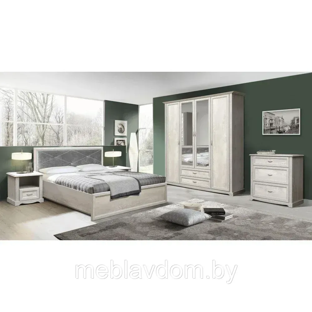 Кровать 32.25-02 Сохо с подъем. мех. (бетон пайн белый)(1600х2000) в Докшицах